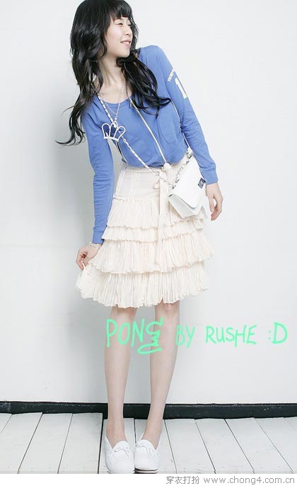 清爽的浅色组合,在淡雅的浅色组合中精致的多层短裙格外醒目