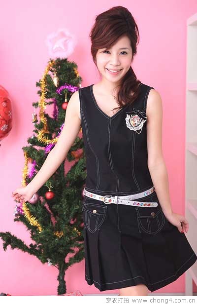 粉嫩色彩的小洋装,映衬出青春动人的气息