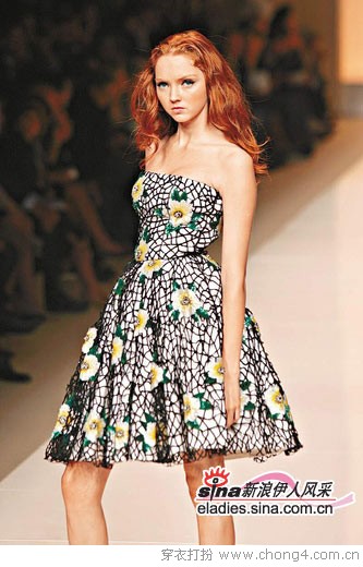 花朵图案增添甜美风情,收腰设计与蓬蓬裙结合更显腰细