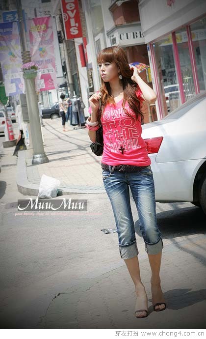 09 艳色的T恤与7分牛仔裤的搭配度更胜一筹