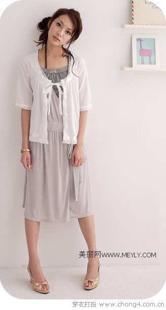 05 针织T,连衣裙,小外套的叠穿,很淑女。