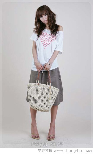 04 醒目的心形装饰与草编篮子相得益彰。田园气息的休闲装扮,给人以舒服恬静的感觉,要去田园度假的女孩不妨选择这样的装扮去享受自然的芳草香气。