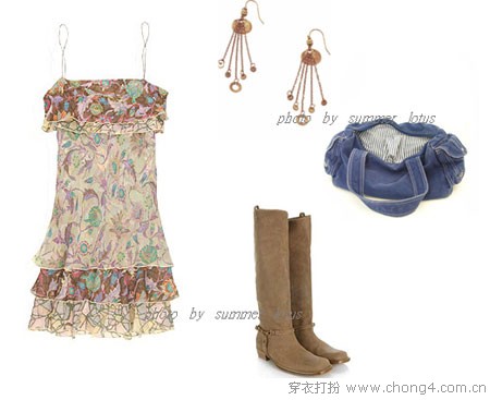 09 从裙子的印花和色彩,鞋子上的串珠设计,包包的质感和精致,都能体现MM的不俗品味,即使是休闲的打扮,也要做到最精美的表现。